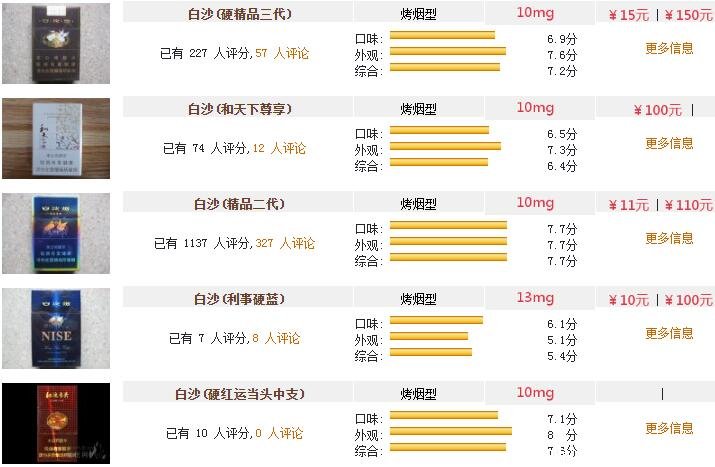 白沙煙全部價格和圖片介紹